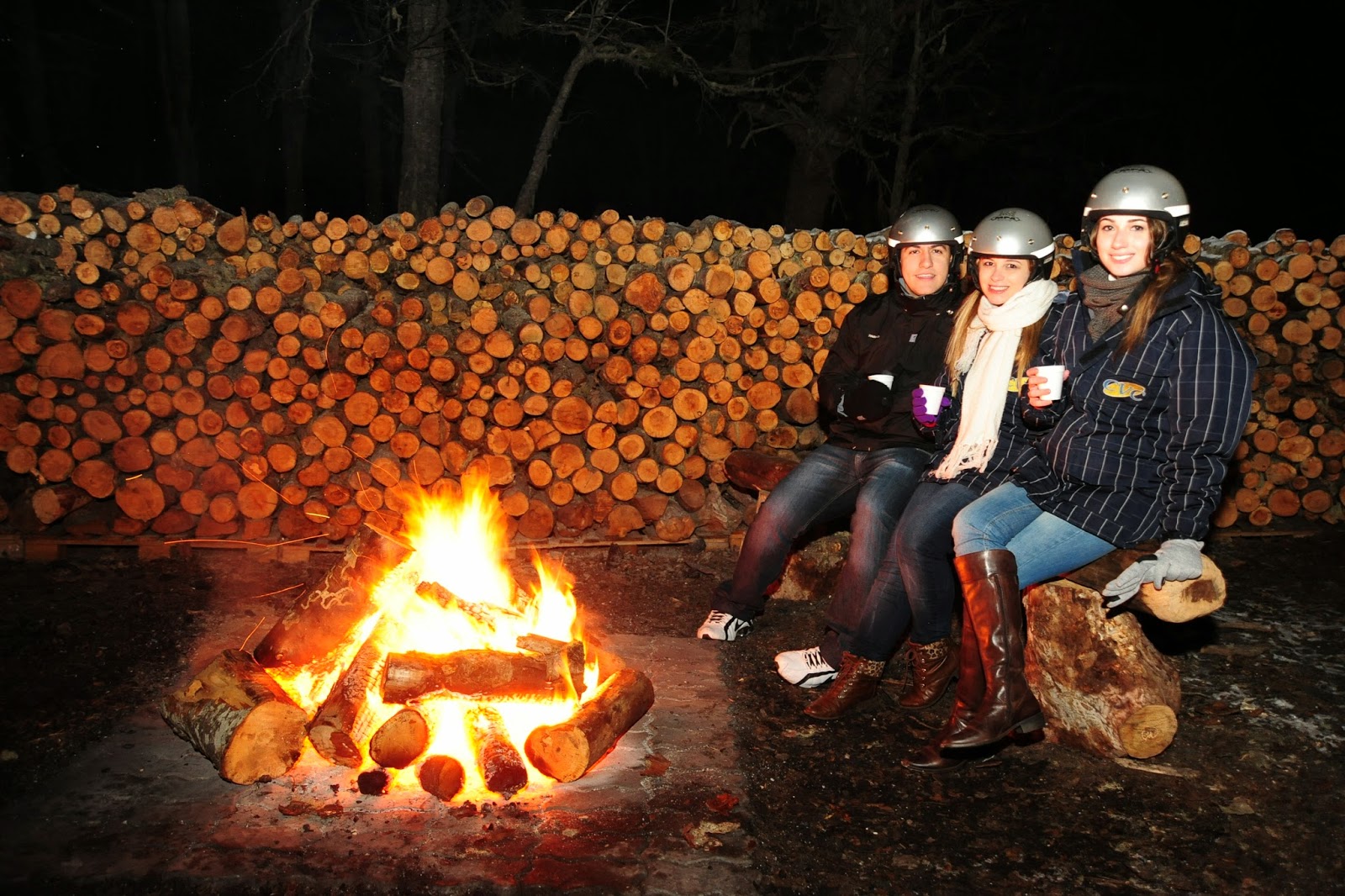 No meio da trilha houve uma parada para tomar um chocolate quente (também tinha a opção de vinho quente, mas não nos arriscamos) e apreciar o calor da fogueira.